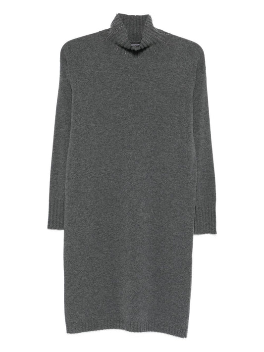 Brunello Cucinelli Halterneck dress in silk crêpe cady and acetate with Precious Beaded Collar