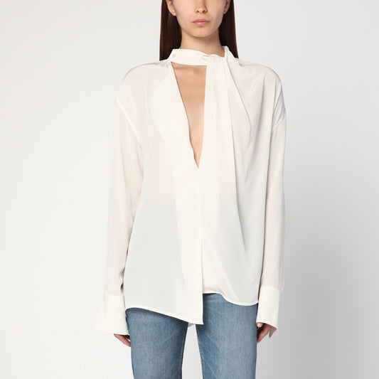 Giuseppe di Morabito Light blue shirt with rhinestone scarf