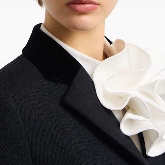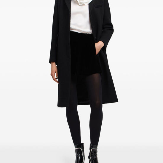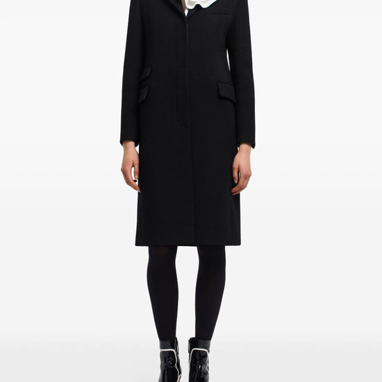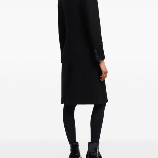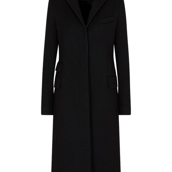 Black button fastening flap pockets straight hem long sleeves wool single-breasted coat