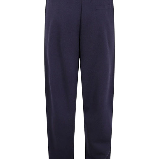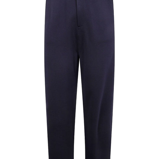 Blue elastic waistband side pockets back welt pocket straight leg straight-leg trousers