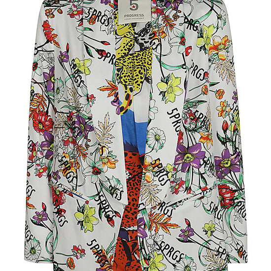 Flower print polyester single-breasted blazer jacket. monopetto, collo revers, fantasia fiori printed single-breasted jacket size and fit - this piece fits true to size. we recommend you get your regular size. model is 1,75m / 5ft 8in wearing size s