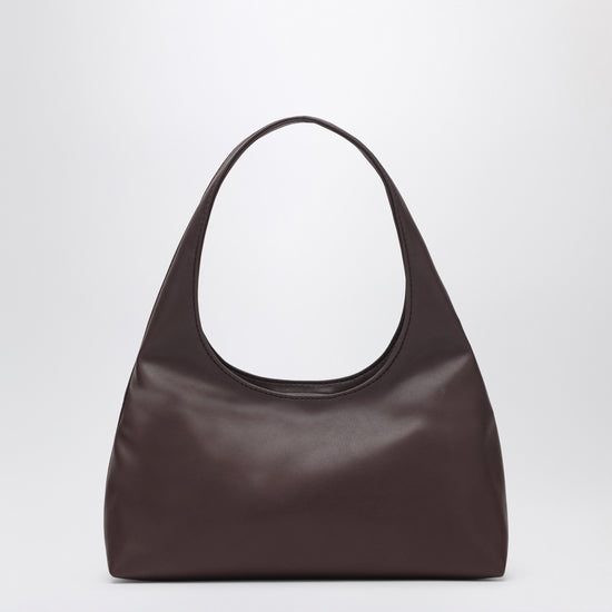 A.p.c. brown faux leather hobo shoulder bag, featuring two handles, magnetic closure, contrasting front logo print, and an internal pocket. size and fit - width 26,5 cm x height 13 cm x depth 4,5 cm handle drop: 20 cm