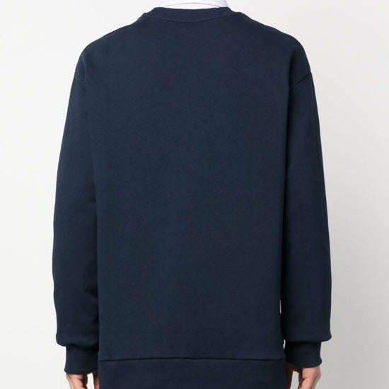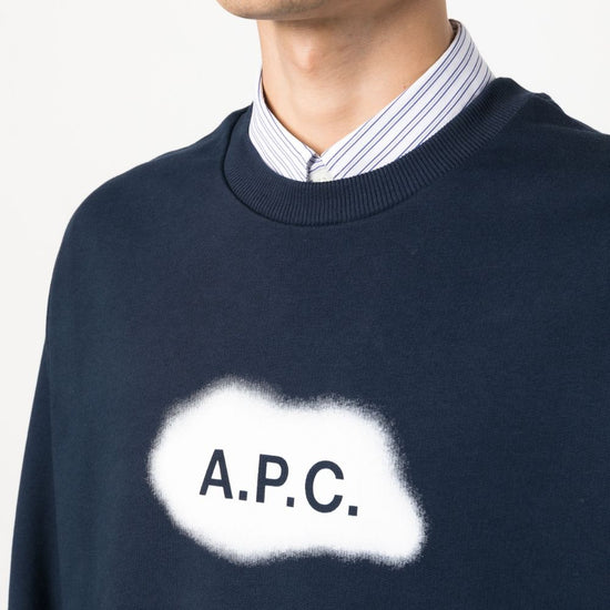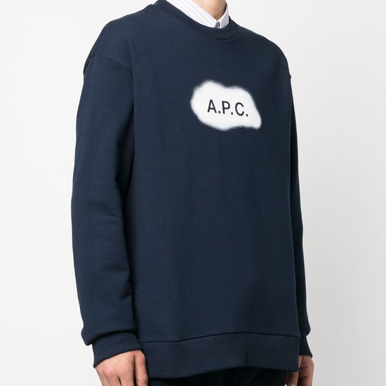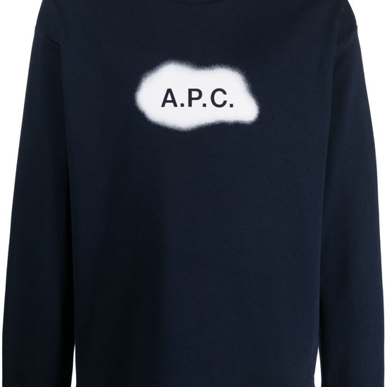 Logo-print cotton sweatshirt from a.p.c. featuring midnight blue, cotton, logo print at the chest, crew neck, long sleeves and straight hem. logo organic cotton sweatshirt size and fit - this piece fits true to size. we recommend you get your regular size. model is 1,84m / 6ft 1in wearing size m
