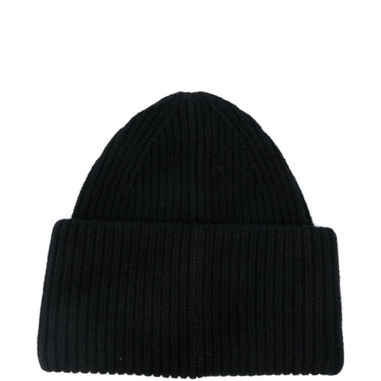 Black ribbed texture logo patch folded cuff logo wool beanie size and fit - attenzione: è un modello unisex, consultare la tabella taglie uomo.