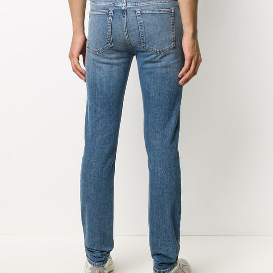 North skinny-fit jeans from acne studios featuring blue, organic cotton blend, slim fit, mid-rise, stretch-fit, front button and zip fastening, classic five pockets, belt loops and logo patch to the rear. positively conscious: this planet conscious product is made from at least 50% organic materials, which helps you support organic farming practices such as the restricted use of synthetic chemicals and genetically modified seeds, improved soil fertility and better livestock management.. organic cotton skinny jeans size and fit - this piece fits true to size. we recommend you get your regular size. model is 1,84m / 6ft 1in wearing size 32 (waist cm)