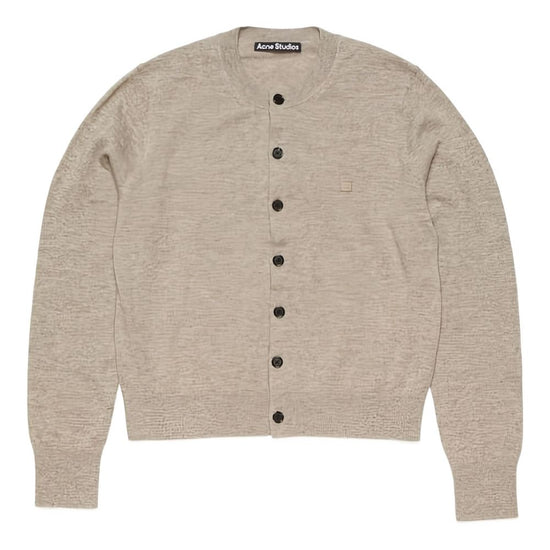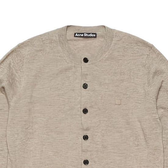 Beige round neck button fastening long sleeves ribbed cuffs wool cardigan