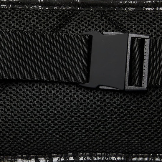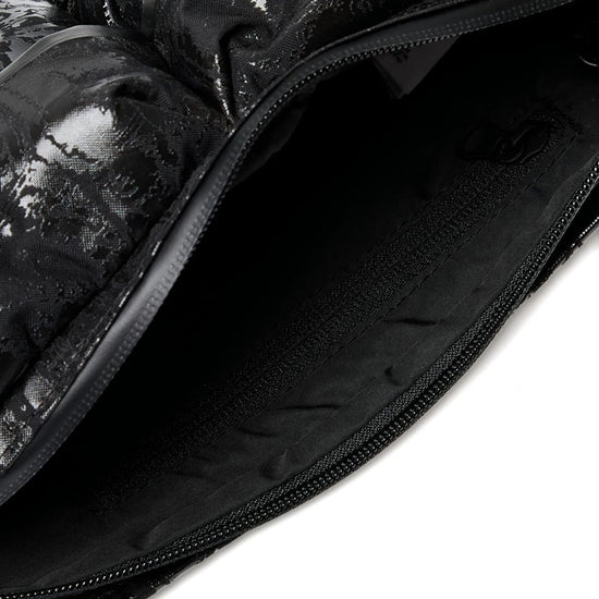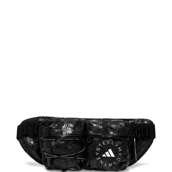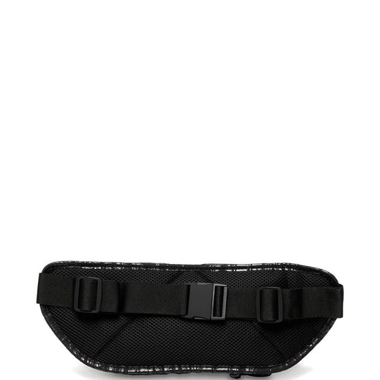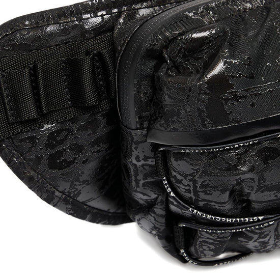 Black bum bag, adjustable shoulder strap, two front patch pockets with zip closure. lobo bumbag size and fit - width 10,63 in / 27 cm