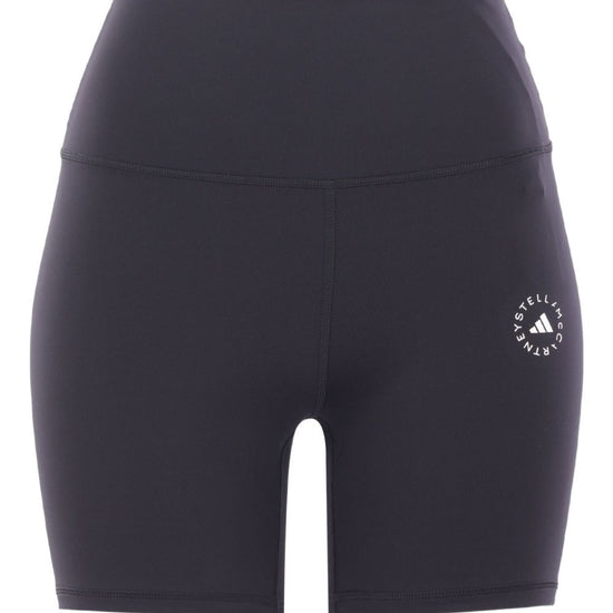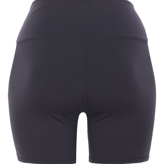 Black high waist circular logo close-fitting ribbed texture subtle seam detailing logo shorts