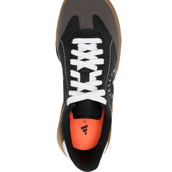 Black/white/forest green suede panelling front lace-up fastening contrasting branded heel counter signature 3-stripes logo logo stamp at side round toe branded insole signature cushioned boost midsole contrasting rubber sole court boost sneakers