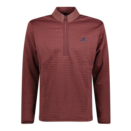 elevate your golf attire with the adidas dwr block golf quarter zip in burgundy. designed for both style and functionality, this quarter zip features long sleeves and a printed chest logo. its regular fit ensures comfort while you swing, making it a must-have for your golf wardrobe.