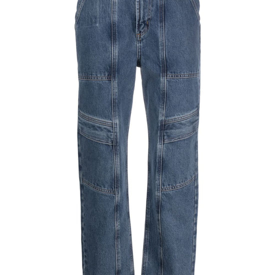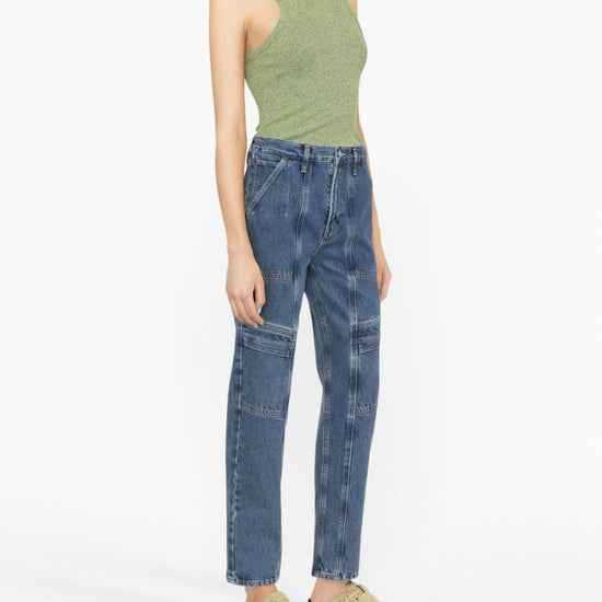Cooper cargo jeans from agolde featuring blue, organic cotton, denim, belt loops, high-waisted, straight leg, classic five pockets and two side cargo pockets. this item is made from at least 50% organic materials.. learn more about what makes a product conscious on our conscious criteria page. cargo straight-leg jeans size and fit - this piece fits true to size. we recommend you get your regular size. model is 1,75m / 5ft 8in wearing size 27 (waist cm)