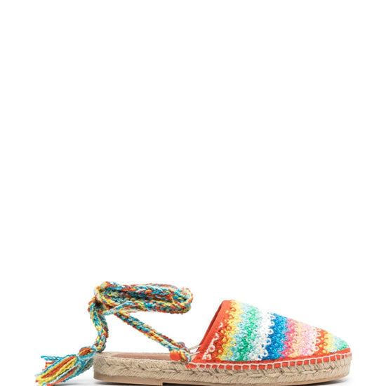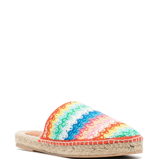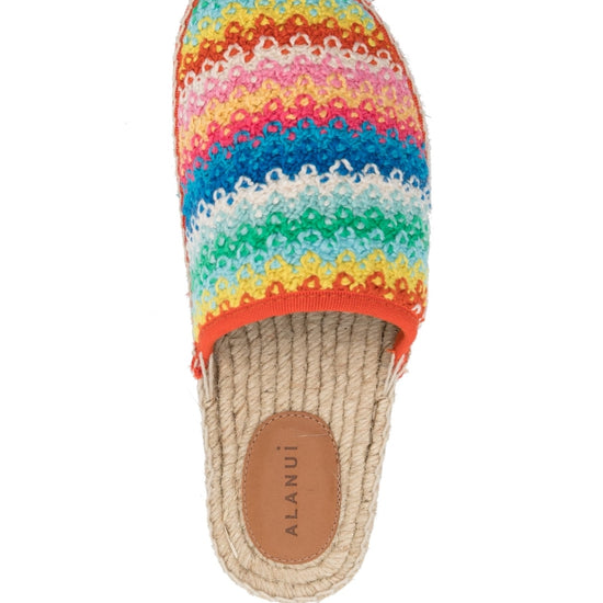 Over the rainbow espadrilles from alanui featuring multicolour, calf leather, interwoven design, horizontal stripe pattern, round toe, slip-on style and braided raffia sole. striped espadrilles size and fit - platform 0,8 in / 2 cm
