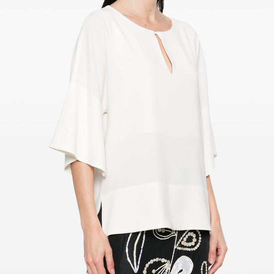 short side slits cady blouse size and fit - this piece fits true to size. we recommend you get your regular size. model is 1,75m / 5ft 8in wearing size 40 (it)
