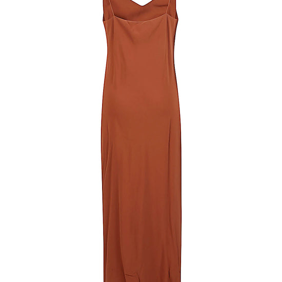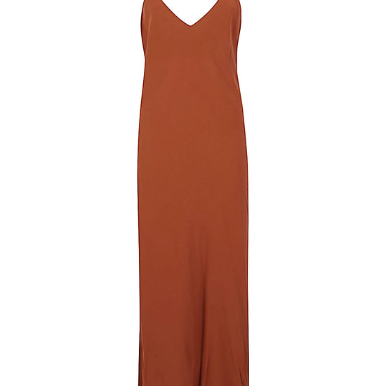 Brown dress with shoulder straps, v-neck, long length. georgette long slip dress size and fit - .