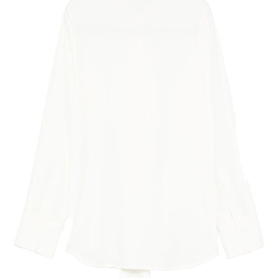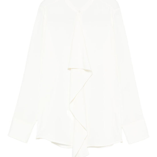 White ruffled detail long sleeves silk shirt