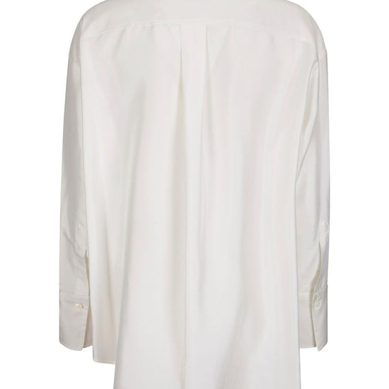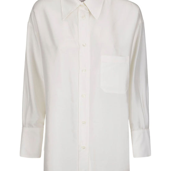 Optic white button closure chest patch pocket long sleeves buttoned cuffs pointed collar silk shirt
