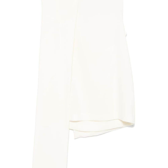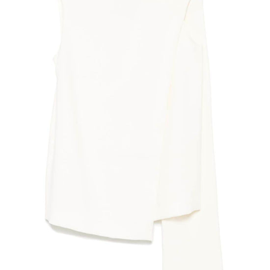 White crepe texture wraparound style side button fastening draped panel detail cowl neck sleeveless partial lining asymmetric hem asymmetric top size and fit - this piece fits true to size. we recommend you get your regular size. model is 1,75m / 5ft 8in wearing size 40 (it)