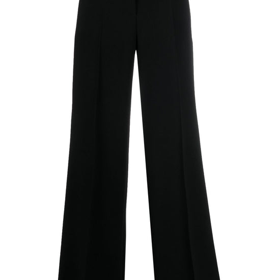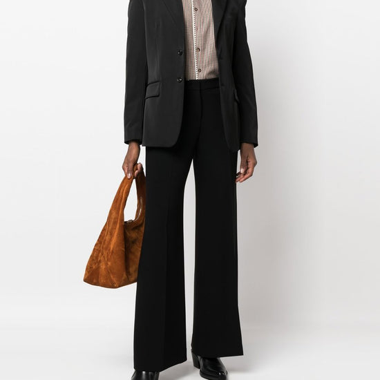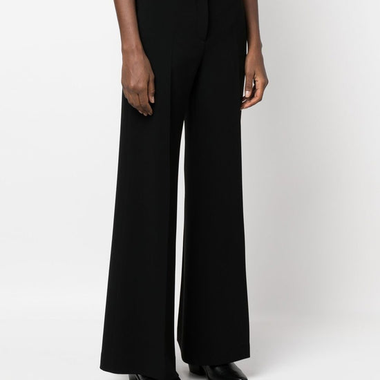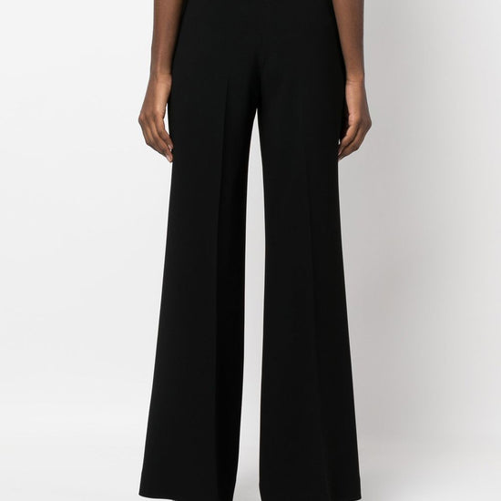 Black tailored cut flared pressed crease concealed front fastening belt loops flared trousers