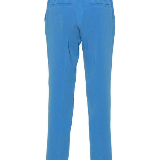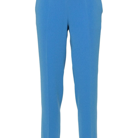 Cerulean blue interlock weave pressed crease belt loops rear elasticated waistband tapered leg two side slit pockets two rear welt pockets straight hem cady trousers size and fit - this piece fits true to size. we recommend you get your regular size. model is 1,75m / 5ft 8in wearing size 40 (it)