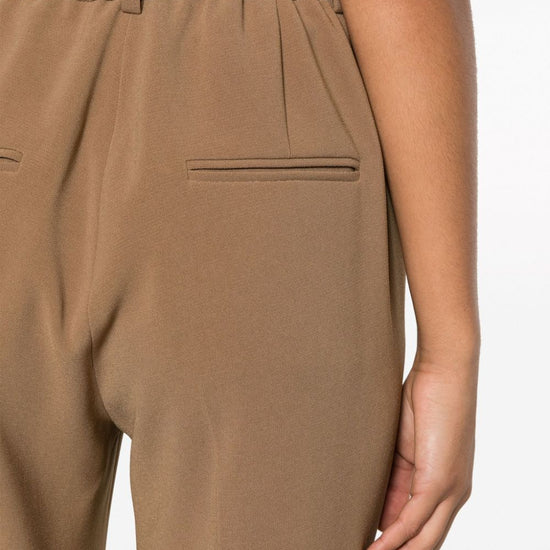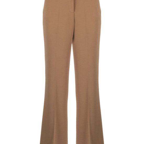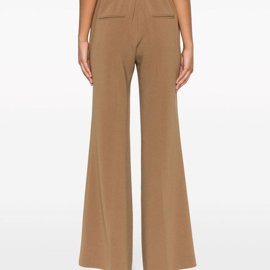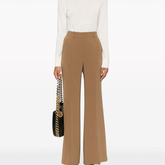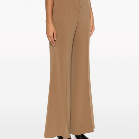 Crepe high-waist flared trousers from alberto biani featuring camel brown, crepe texture, belt loops, concealed front fastening, pressed crease, rear elasticated waistband, high waist, flared hem, two side inset pockets and two rear welt pockets. a zampa wide leg cady trousers size and fit - this piece fits true to size. we recommend you get your regular size. model is 1,75m / 5ft 8in wearing size 40 (it)