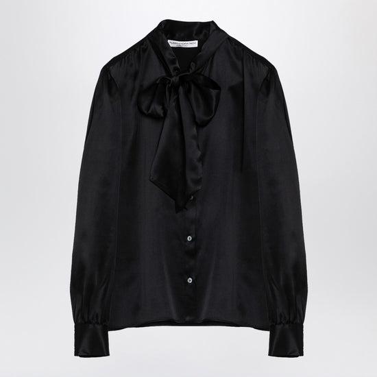 Black silk shirt from alessandra rich featuring a front button placket, long sleeves with buttoned cuffs, a button-down collar fastening and a straight hem. size and fit - model wears size 40 it model measurements: height: 179 cm chest: 82 cm waist: 65 cm hips: 90 cm