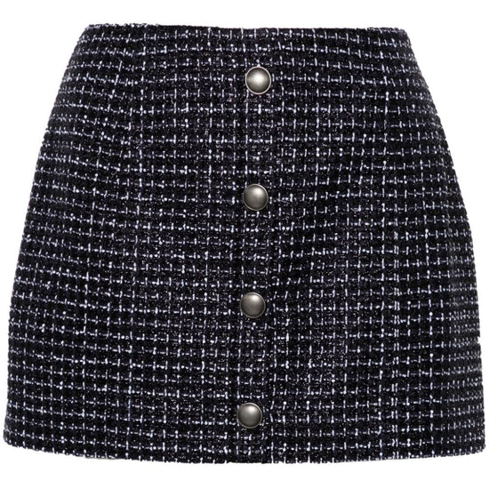 Navy blue/white tweed metallic threading decorative button detailing thigh-length full lining straight hem concealed side hook and zip fastening sequin checked tweed mini skirt size and fit - this piece fits true to size. we recommend you get your regular size. model is 1,75m / 5ft 8in wearing size 40 (it)