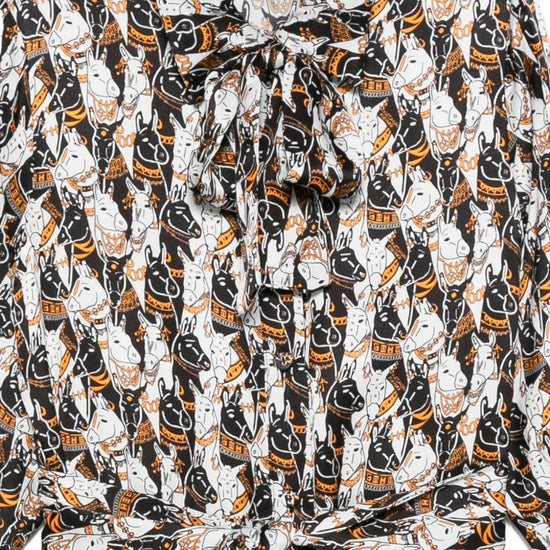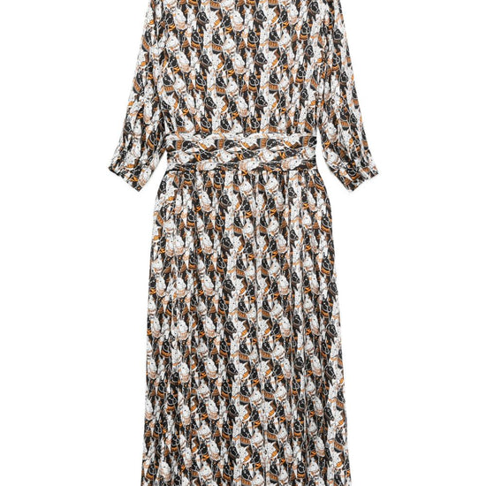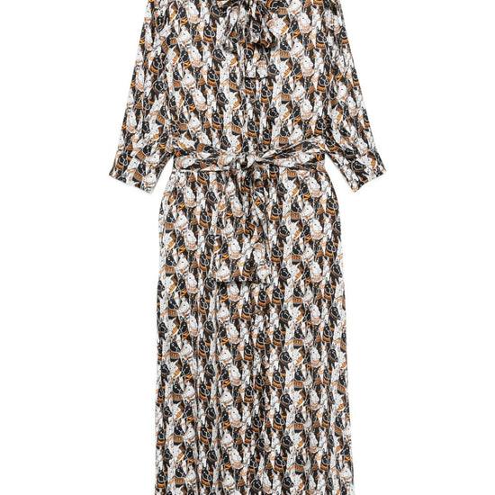 Multicolour all-over graphic print tie neck self-tie belt three-quarter sleeves pleated skirt printed shirtdress size and fit - .