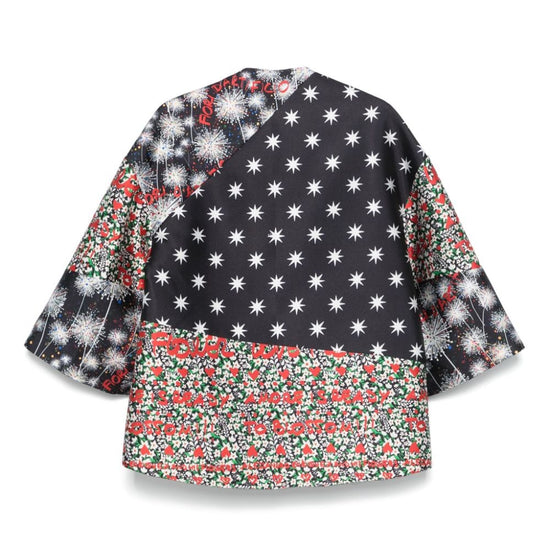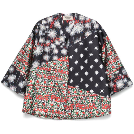 Black/multicolour twill weave mix print crossover neck drop shoulder half-length sleeves open front full lining straight hem printed kimono size and fit - this piece fits true to size. we recommend you get your regular size. model is 1,75m / 5ft 8in wearing size 40 (it)