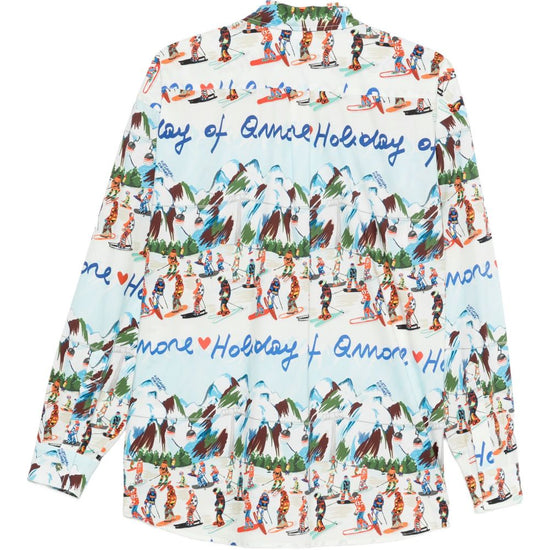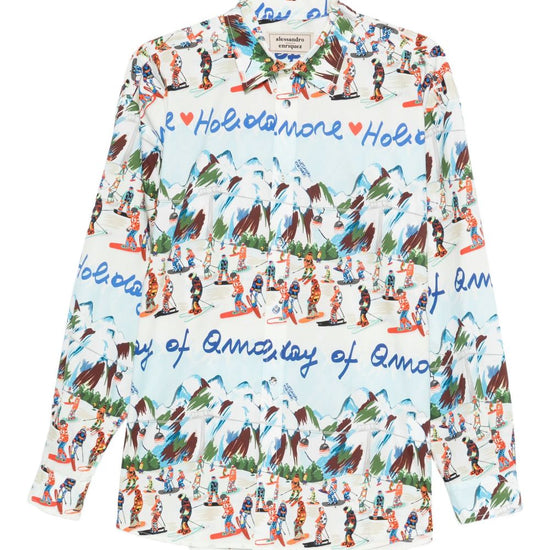 White/multicolour point collar front button fastening long sleeves all-over graphic print printed cotton shirt