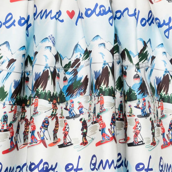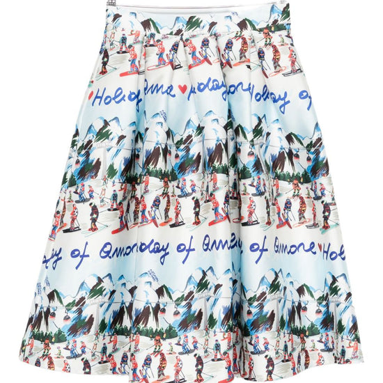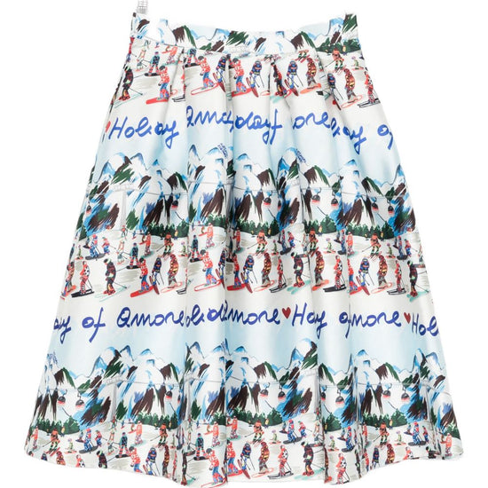 Multicolour satin all-over graphic print pleat detailing a-line high waist full skirt knee-length straight hem printed midi skirt