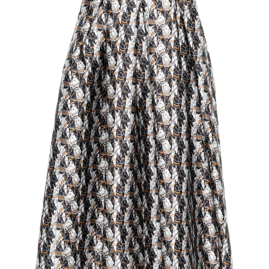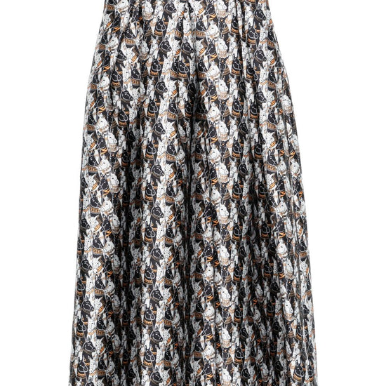 Black/multicolour all-over graphic print pleated straight hem printed long skirt
