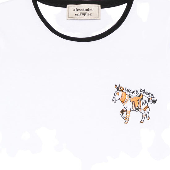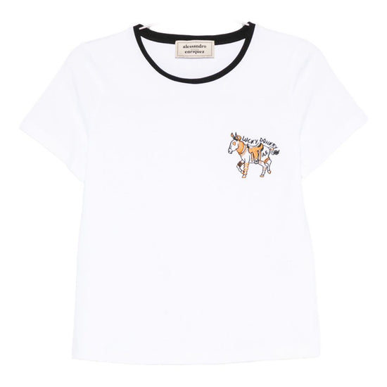 White short sleeves embroidered motif  embroidered cotton t-shirt