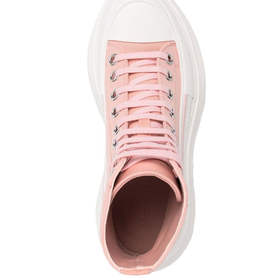 Rosa chiaro, bianco, logo laterale goffrato, chiusura frontale con lacci e punta tonda. tread slick ankle boots size and fit - heel 2,8 in / 7 cm; platform 1,6 in / 4 cm