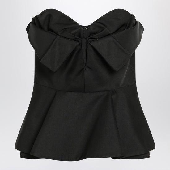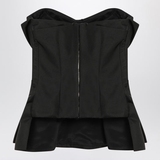 Strapless top by alexander mcqueen in black silk blend duchess, featuring draping on the neckline, bodice with cut-out details, flared hem with ruffles, and a zip closure at the back. size and fit - model wears size 40 it model measurements: height: 178 cm chest: 83 cm waist: 63 cm hips: 91 cm