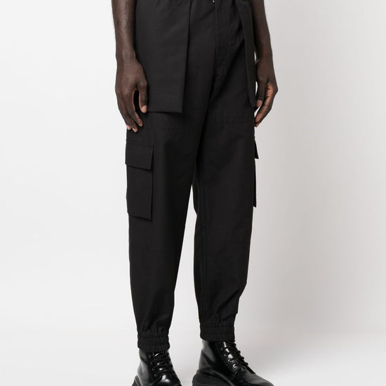 Cotton cargo trousers from alexander mcqueen featuring black, cotton, belt loops, multiple cargo pockets and elasticated cuffs. organic cotton cargo trousers size and fit - this piece fits true to size. we recommend you get your regular size. model is 1,84m / 6ft 1in wearing size 48 (it)