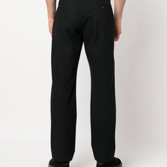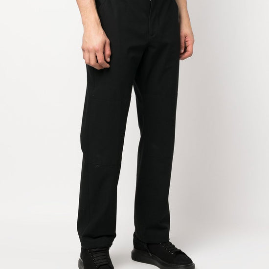 Drawstring-hem cotton trousers from alexander mcqueen featuring black, cotton, belt loops, button fastening, zip fly fastening, belted waist tabs, two side inset pockets, rear jetted pocket, rear button-fastening jetted pocket, straight leg and drawstring hem. organic cotton trousers size and fit - this piece fits true to size. we recommend you get your regular size. model is 1,84m / 6ft 1in wearing size 48 (it)