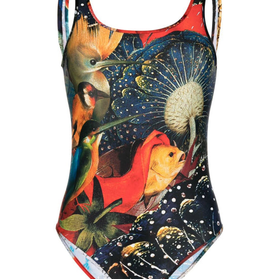 Graphic-print jersey bodysuit from alexander mcqueen featuring multicolour, jersey knit, all-over graphic print, u-neck, sleeveless and stretch-design. one-piece printed jersey swimsuit size and fit - this piece fits true to size. we recommend you get your regular size. model is 1,75m / 5ft 8in wearing size 40 (it)