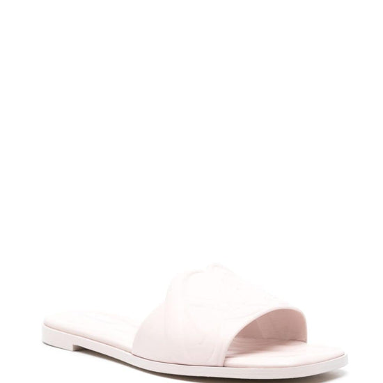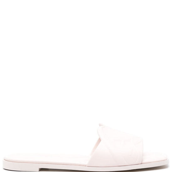 Clay pink calf leather smooth grain logo-embossed strap square open toe branded leather insole flat leather sole slip-on style this piece comes complete with a protective dust bag. leather flat sandals size and fit - heel 0,8 in / 2 cm