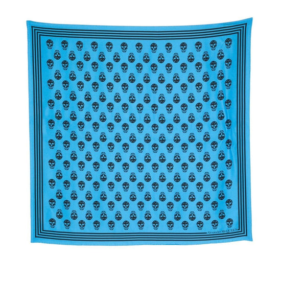 Cerulean blue, black silk square shape skull print stripe detailing logo-print edge finished edge skull silk scarf