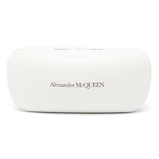 Spike studs rectangular-frame sunglasses from alexander mcqueen featuring black, acetate, glossy finish, rectangle frame, grey tinted lenses, uv-protective lenses, spike stud detailing, logo-engraved arm and curved tips. these glasses come with a protective case.. sunglasses