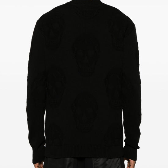 Black cotton knitted construction skull jacquard crew neck long sleeves ribbed cuffs and hem skull knitted cotton jumper size and fit - this piece fits true to size. we recommend you get your regular size. model is 1,84m / 6ft 1in wearing size m