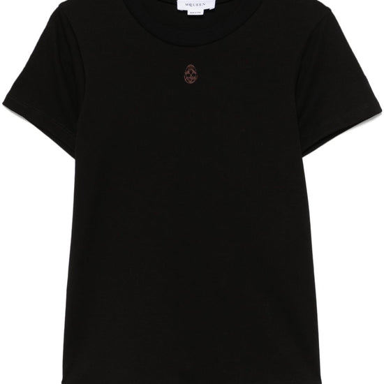 Black skull embroidery to the front crew neck short sleeves skull cotton t-shirt size and fit - this piece fits true to size. we recommend you get your regular size. model is 1,75m / 5ft 8in wearing size 40 (it)