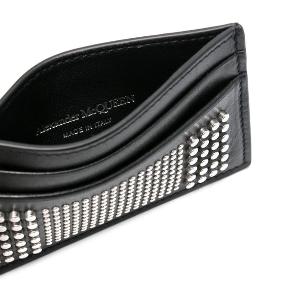 Black calf leather silver-tone stud detailing card slots studded leather card case size and fit - width 4,33 in / 11 cm