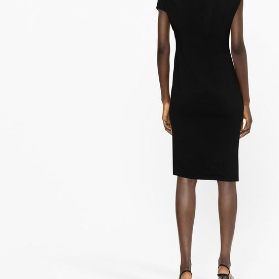 One-shoulder draped midi dress from alexandre vauthier featuring black, draped design, one-shoulder, short sleeves, side slits and mid-length. mono spalla mini dress size and fit - this piece fits true to size. we recommend you get your regular size. model is 1,75m / 5ft 8in wearing size 36 (fr)