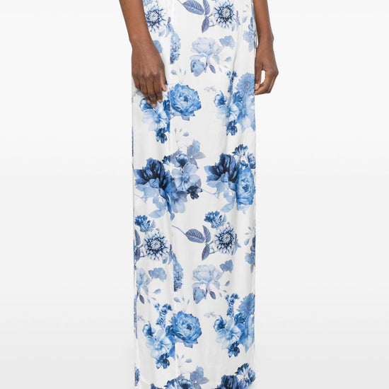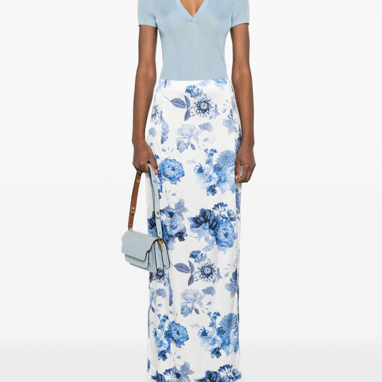 White rear zip fastening elasticated waistband front slit all-over floral print stephine printed long skirt size and fit - this piece fits true to size. we recommend you get your regular size. model is 1,75m / 5ft 8in wearing size 4 (us)