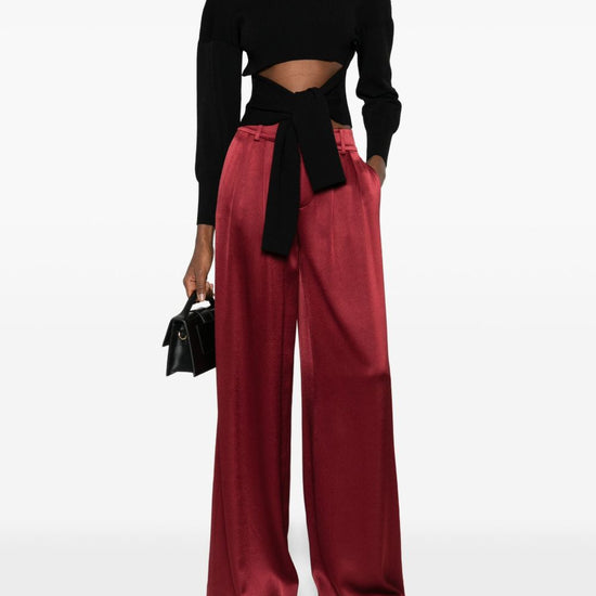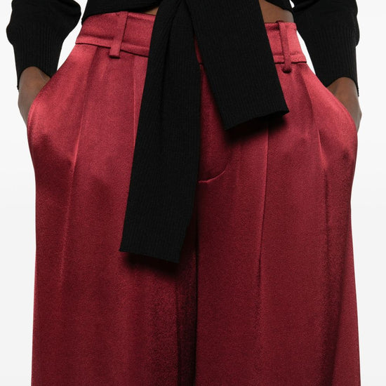 Oxblood red pleated belt loops concealed fly fastening kenndey wide-leg trousers