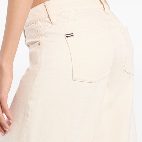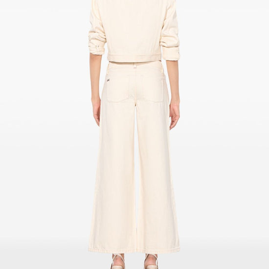 Cream high-rise waist belt loops front zip fastening side pockets slay wide-leg trousers