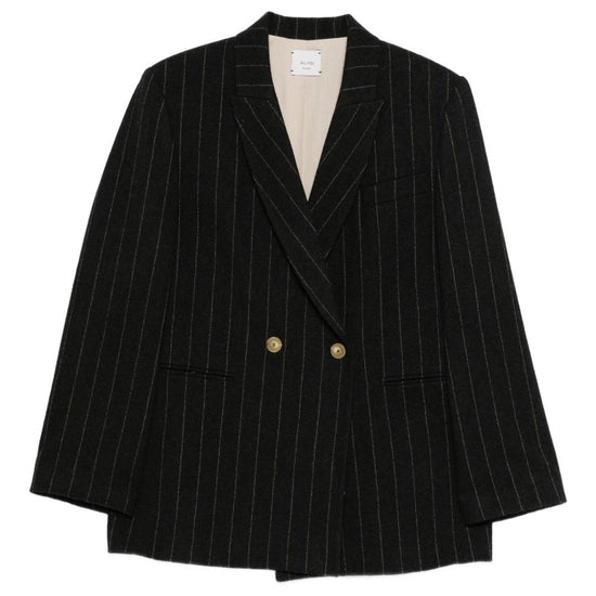 Grey pinstripe double-breasted button fastening wool double-breasted jacket