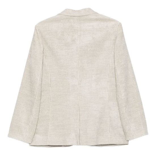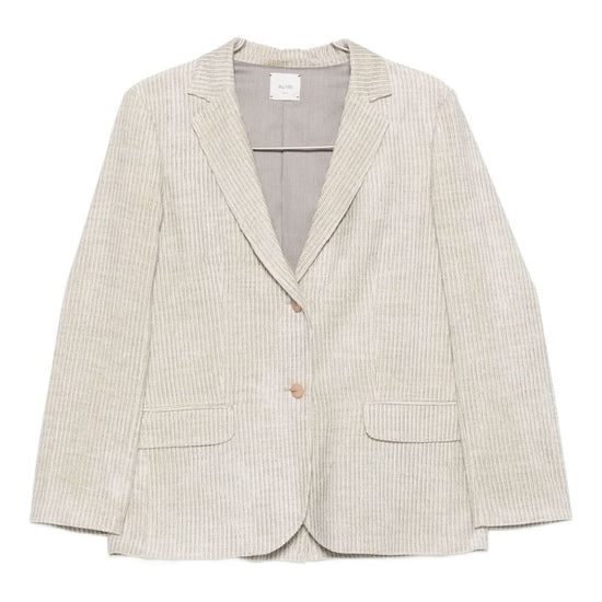 Light grey, notched lapel, long sleeves, front button fastening. single-breasted jacket