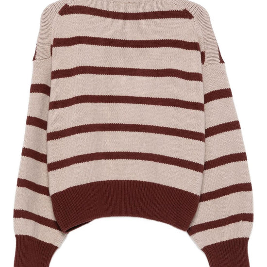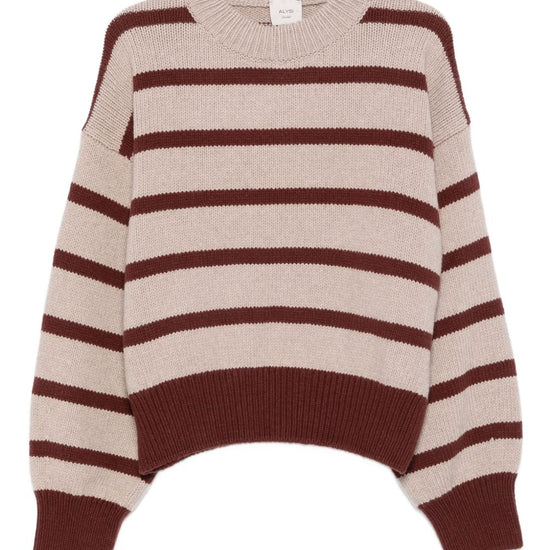 Beige, stripe detail, round neck, long sleeves, ribbed trim. striped wool jumper